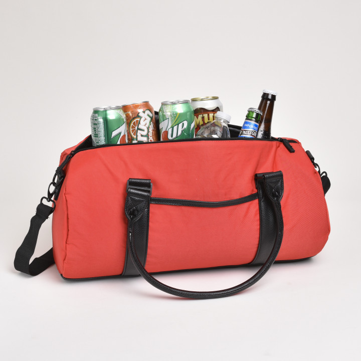 This retail inspired barrel duffel bag doubles as a high-end cooler! The crinkle nylon, along with its ultra-thick PEVA lining and vegan leather, transforms this everyday fashion accessory into the ultimate cooler. Holds up to 30 standard 12 oz. cans.